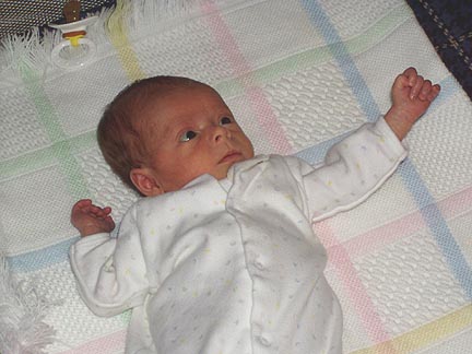 It's 1/20/04 and I'm 4 weeks old today - do I look bigger yet? I wasn't even supposed to be here yet for 3 more days!! :-)